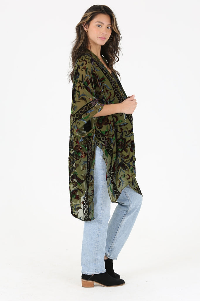 Gorgeous Velvet Kimono ~ Green Burnout Print
